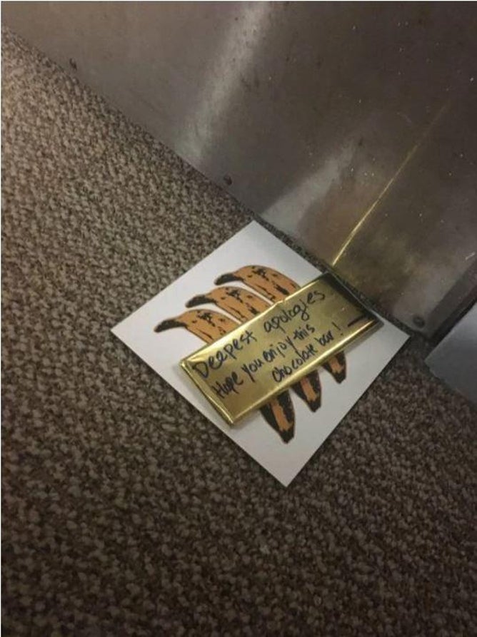 Ternyata surat yang ditulis oleh Levine mendapat balasan dari sang tetangga yang telah membacanya. Sang tetangga pun tutur membalas surat Levine dan memberikan sebatang cokelat sebagai tanda permintaan maafnya.