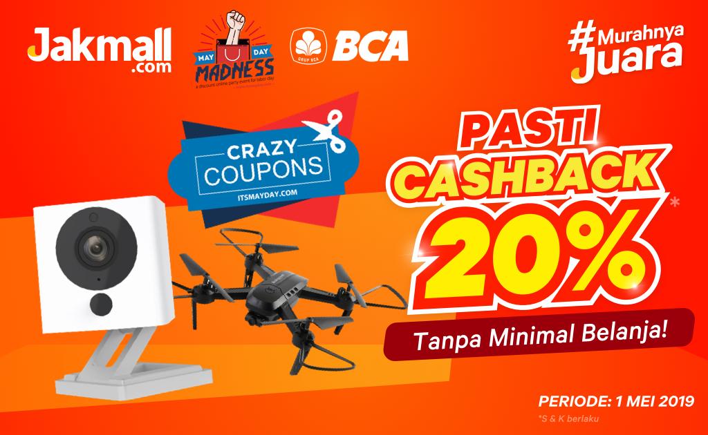 Turut memeriahkan Hari Buruh, Anda bisa manfaatkan promo diskon belanja yang ditawarkan oleh Jakmall.com. Melalui program Promo Mayday Crazy Coupons Jakmall, Anda bisa mendapatkan Cashback 20% tanpa minimum pembelian. Caranya cukup masukkan kode voucher MAYDAY19. Mudah bukan?