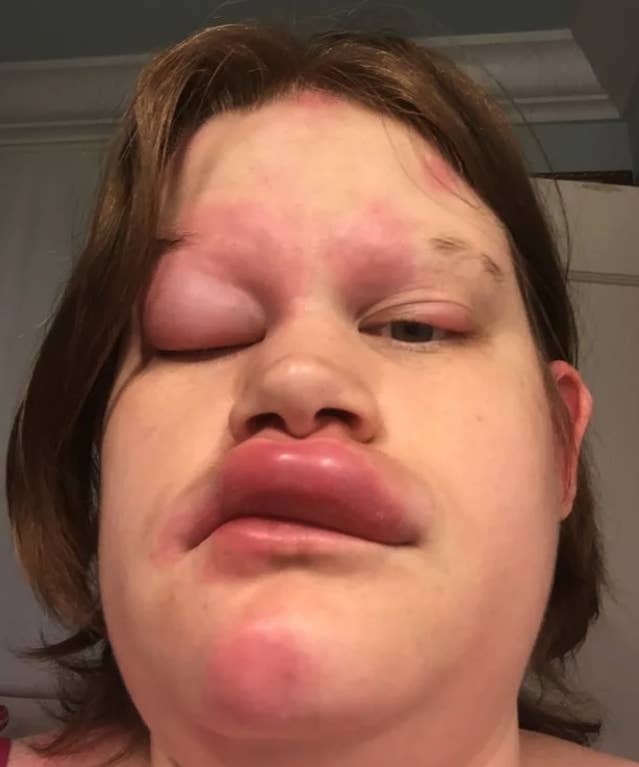 Wanita tersebut mengaku butuh waktu sekitar 8 bulan sampat dia tahu bahwa penyebabnya adalah alergi steroid. Dia merasakan seakan-akan wajahnya hampir terbelah dua.